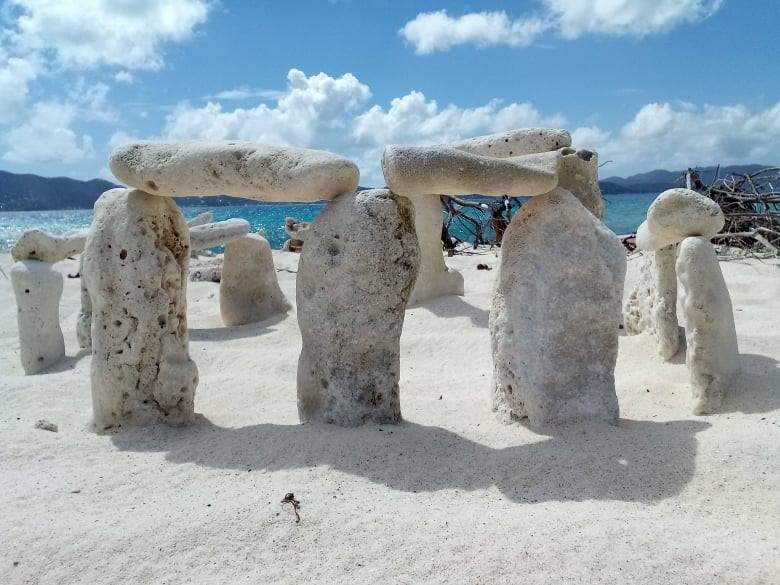 Вранці ми вирушили в бік острова Тортола, дорогою заскочивши на маленький безлюдний райський острів Сенді-Кей. Окрім розкішного піщаного пляжу та пальм, тут є своєрідний сад каменів: міні-Стонгендж, піраміди й загадкові інсталяції. Можливо, так туристи загадують бажання або позбавляються страхів — хто знає…