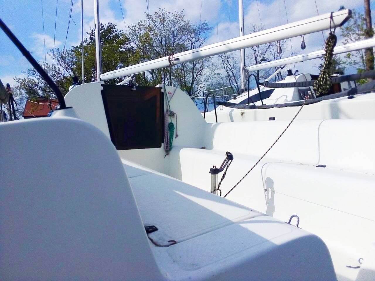 Великий гоночний кокпіт та хороший рівень проживання у просторому салоні на 5 повноцінних спальних місць – тому підтвердження. Також у розпорядженні екіпажу – умивальник, можливість встановлення газової плитки та біотуалету.